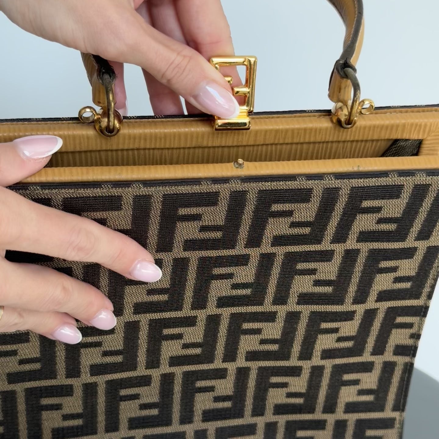 Fendi Brown Zucca Canvas Kiss Lock Bag